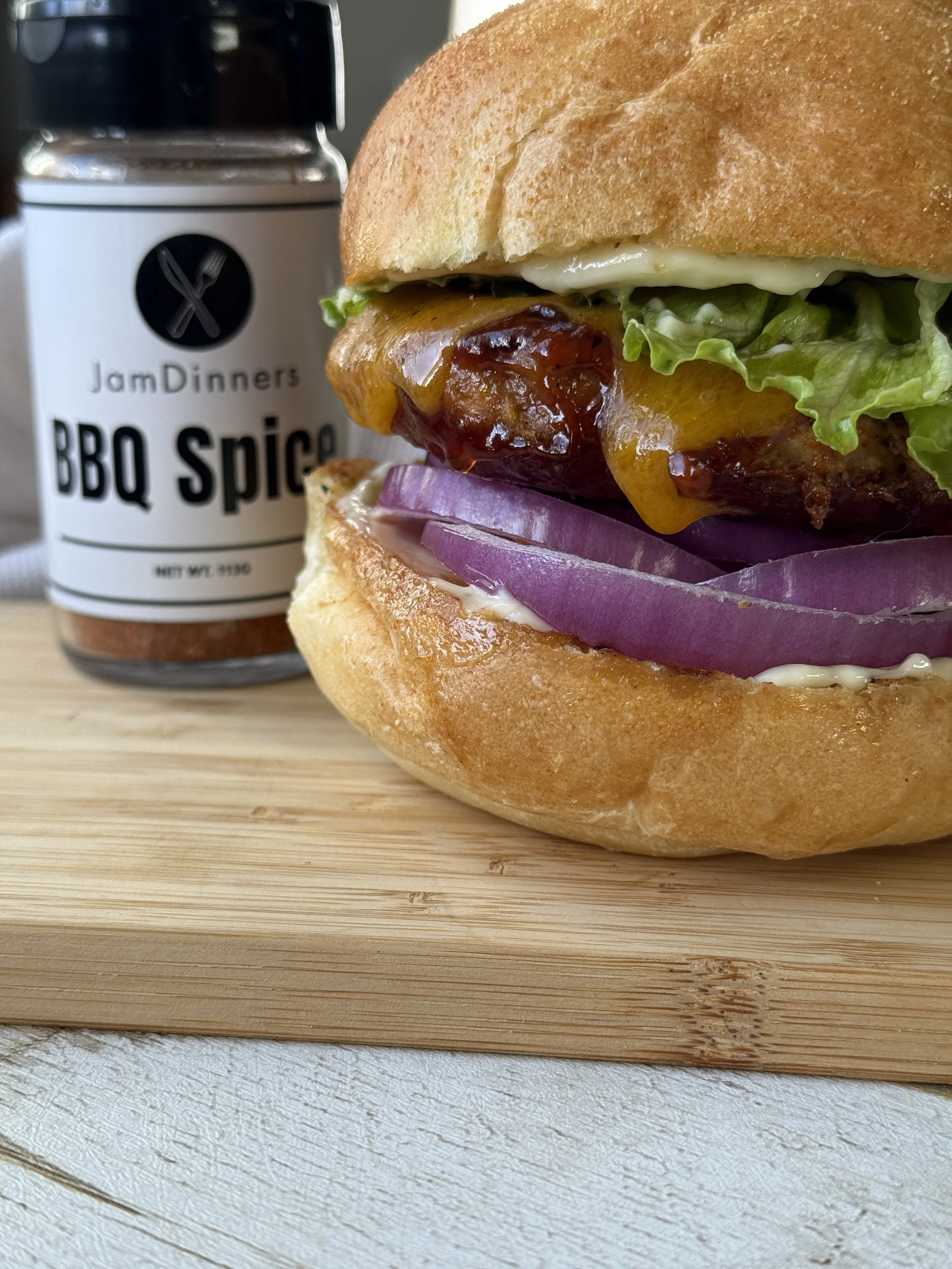 Mix all ingredients together and then form into patties. Heat BBQ or griddle to appropriate temperature and cook through. Flipping 1/2 way. Lather BBQ sauce on each side once almost fully cooked and melt a piece of cheese on 1 side at the end prior to pulling off the BBQ! Top with favorite fixings and enjoy!