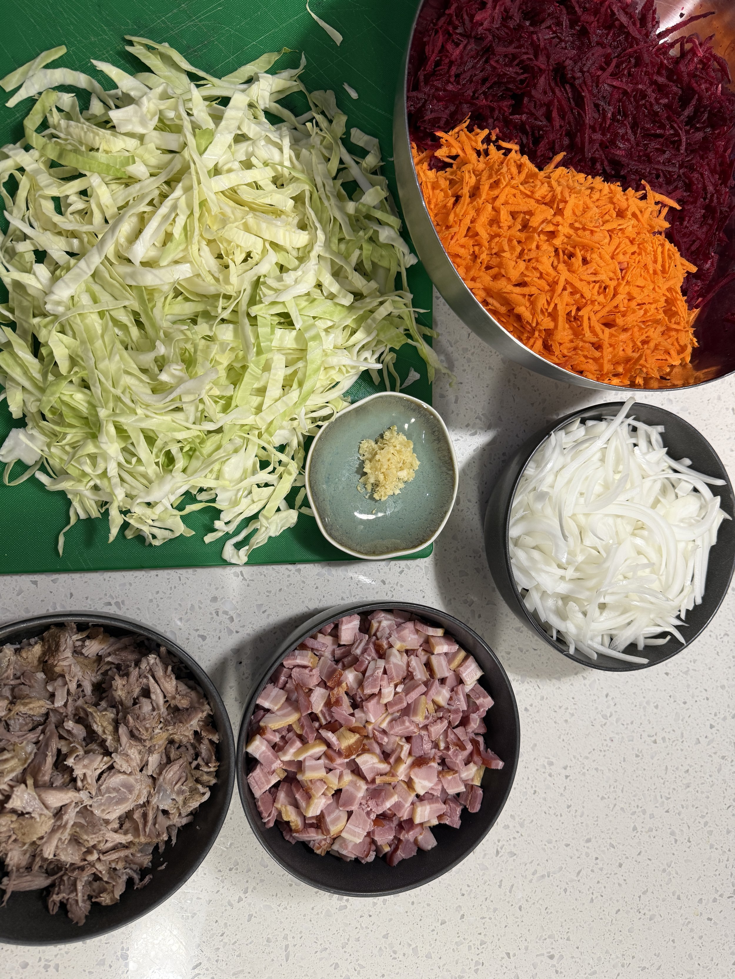 Borsch is something Mark grew up eating and making and quite frankly was always something I avoided. i was confident I would never like beets. Fast forward 20+ years and this soup is 10/10.