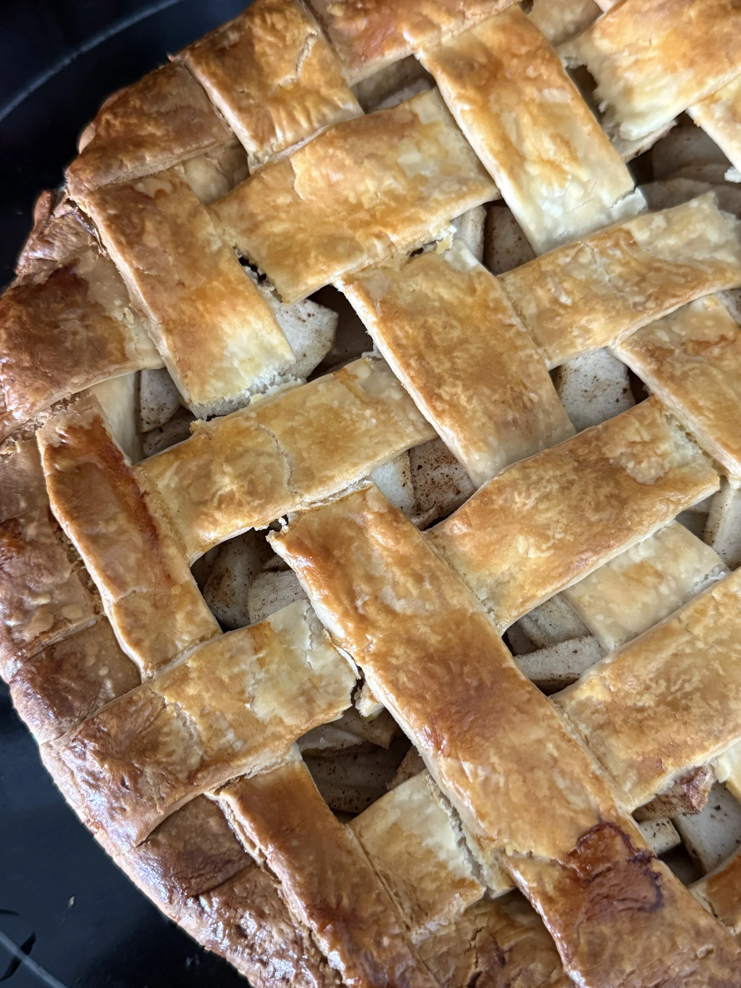 Bake pie for 45 minutes or until apples are properly cooked. Around the 30 minute mark, remove pie from the oven and brush with egg wash then put back in the oven to bake for another 15 minutes. Serve warm with vanilla ice cream!