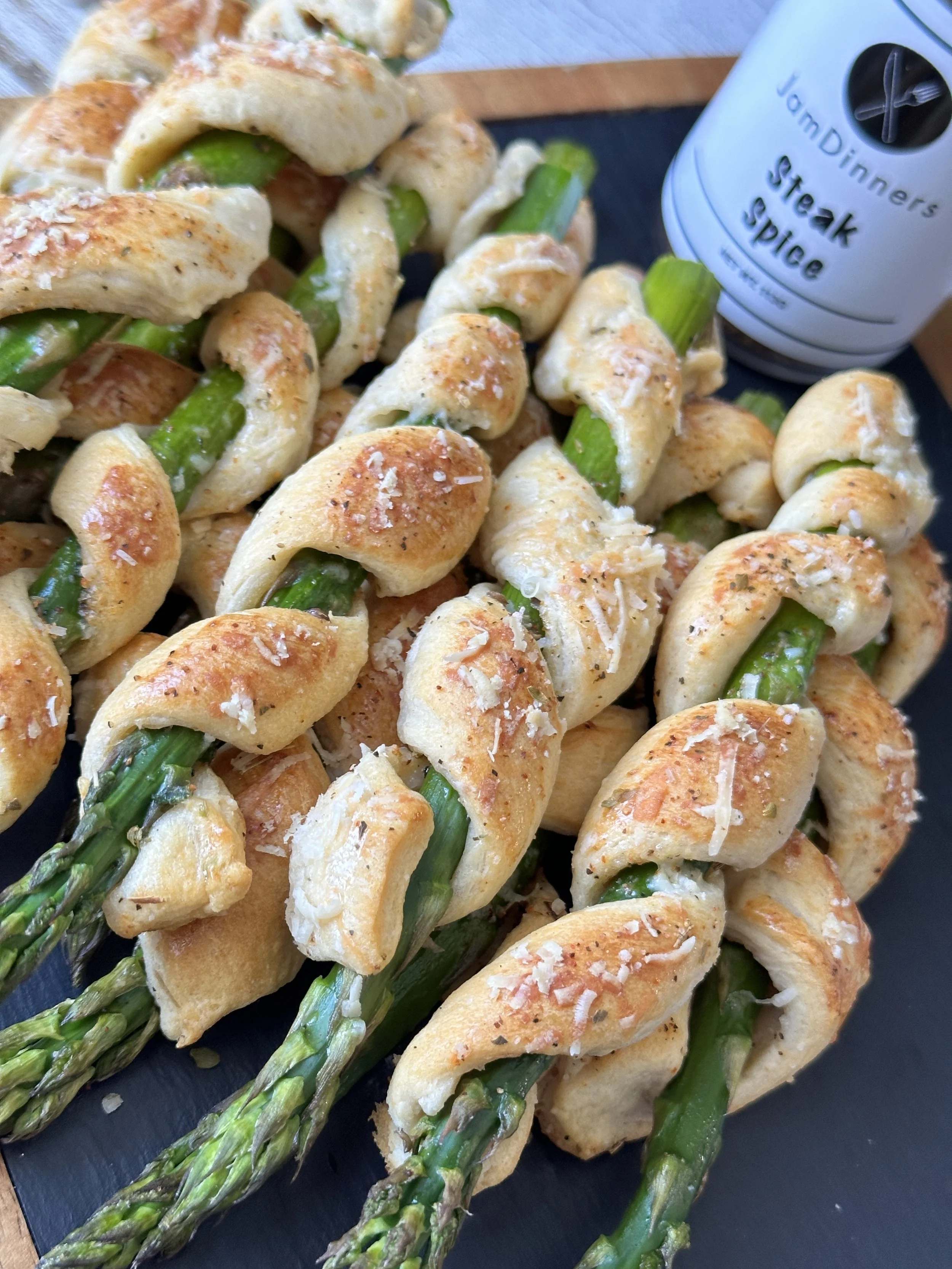 You could also plus up this recipe really easily by adding a layer of prosciutto between the asparagus and the dough. Or do half the batch of asparagus this way and the other half with ONLY prosciutto … we’ve got a recipe for that!