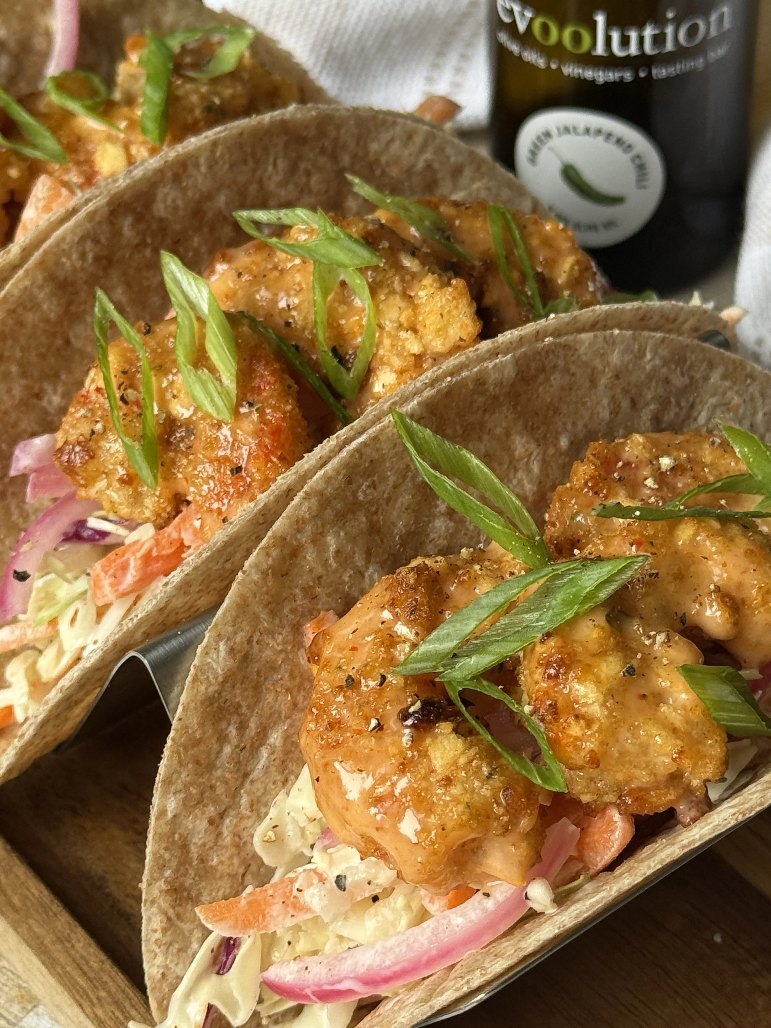 I won’t even go into my love for tacos …. I have explained it far too many times in this blog that I am sure you get the picture. Shrimp tacos though are one of the few taco things the Mr. enjoys eating! I don’t blame who… Fresh tacos with Breaded shrimp are amazing! We use our air fryer to cook the shrimp, it makes us feel better about the breaded shrimp and its way easier to clean! For best taste, prep the aioli in the morning or the day before you intend to use the sauce. It allows all the flavors to come together!